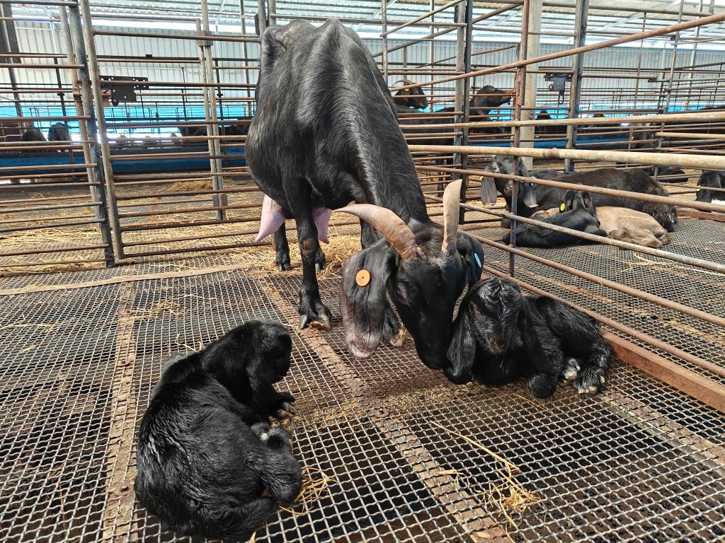 墨羊母羊及出生仅两小时的小羊羔。(新华网 周敏 摄)