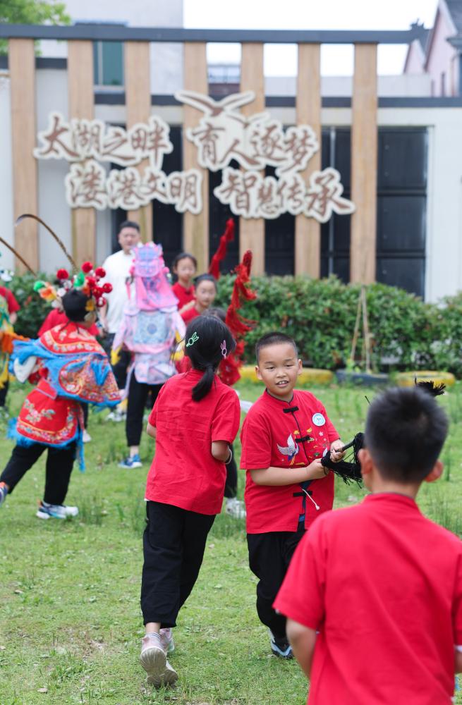 从今年春季学期开始,浙江省湖州市吴兴高新区太湖小学开始设置以太湖溇港非遗文化传承为特色的跨学科项目化课程,既丰富了学生们的课间生活,提升全身心体验活动的专注力和合作交往能力,又让他们能积极参与到特色非遗文化的传承和劳动素养的培养中,引导学生德智体美劳全面发展。