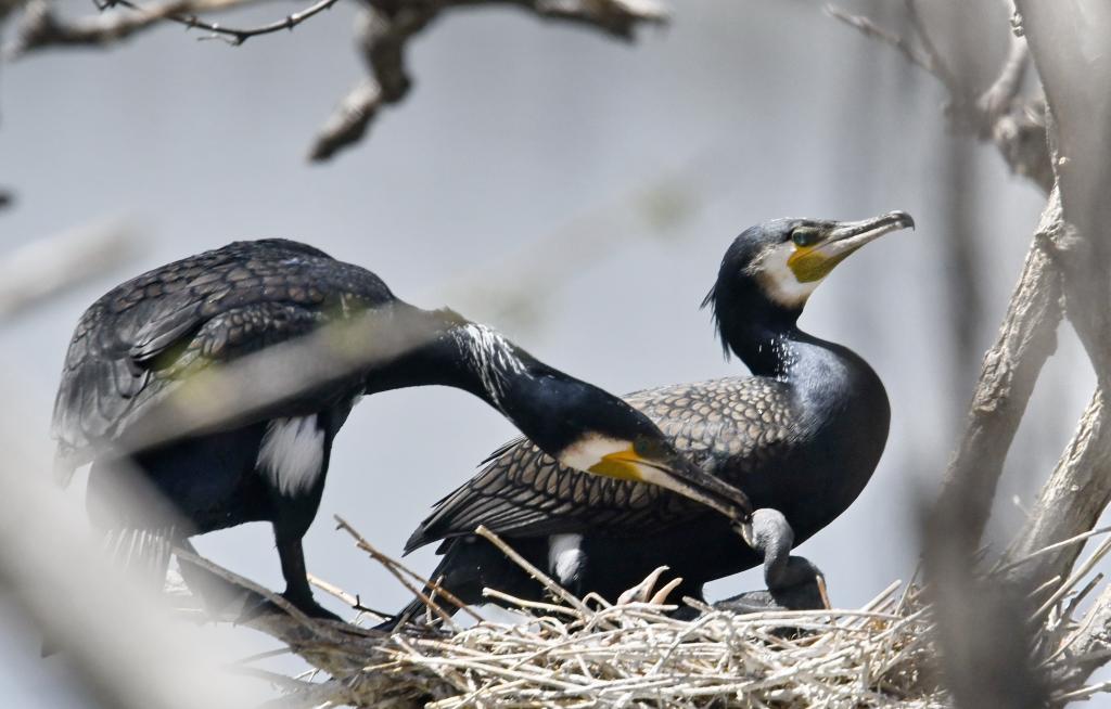 密云水库鸟岛上哺育小鸟的鸬鹚(4月23日摄)。
