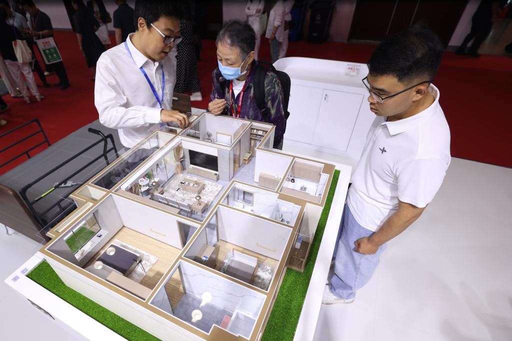 5月21日,参观者坐在轮椅上体验老年人或残疾人在居家环境里遇到的一些障碍和解决方案。