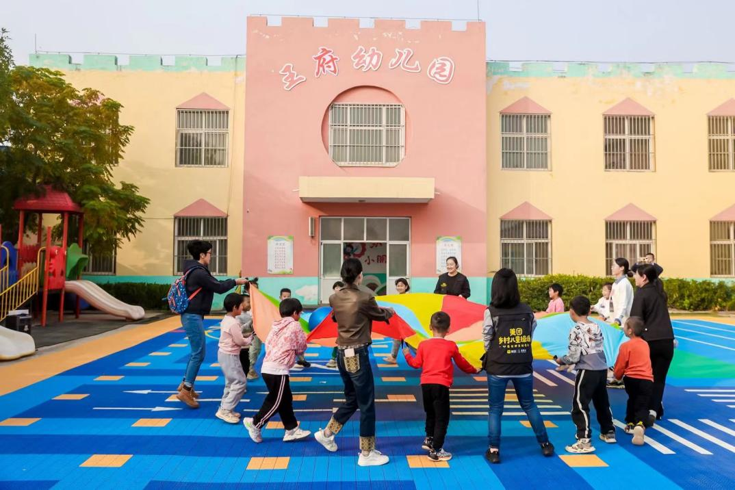 据悉,本次王府中心校幼儿园落成的是一座由3681个美团公益商家捐赠、3850个拼接地板组成的乡村儿童操场,同时配套了相应游戏运动器材。新操场包含30米的跑道和5个不同的功能区,包括小迷宫、斑马线、环保教育角等等,配合游戏运动器材,能灵活“搭配”出适合幼儿园小朋友成长阶段的各类游戏。新操场落成后,园内的孩子们有了一块安全、舒适的运动场地,他们可以在这座新乐园里快乐地奔跑、尽情释放天性。