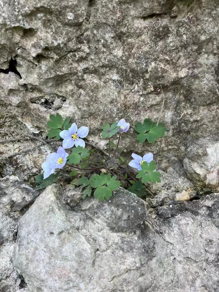 这是分布在彭州市白鹿镇塘坝村春芽坪附近崖壁上的距瓣尾囊草。(彭州市人民检察院供图)