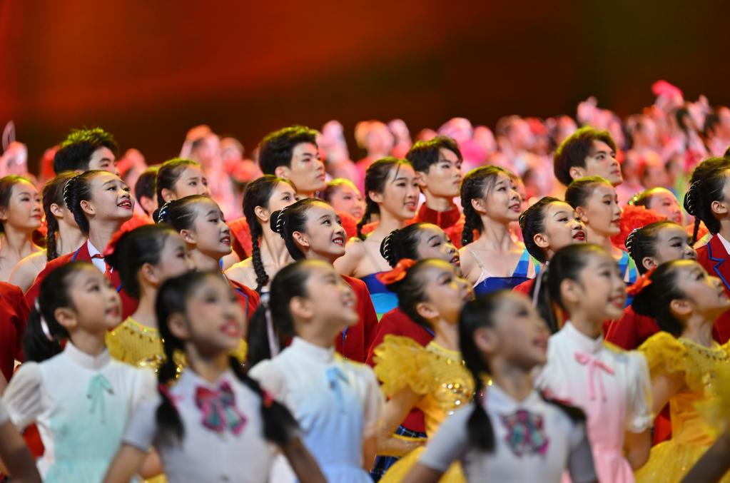 5月31日至6月1日,由中国宋庆龄基金会、中国福利会、国家大剧院共同主办,北京市教育委员会协办的“我和祖国一起成长”2023年“六一”国际儿童节主题演出活动在国家大剧院举行。来自北京、上海、海南、香港、澳门等地近千名少年儿童参加演出。新华社记者金良快摄