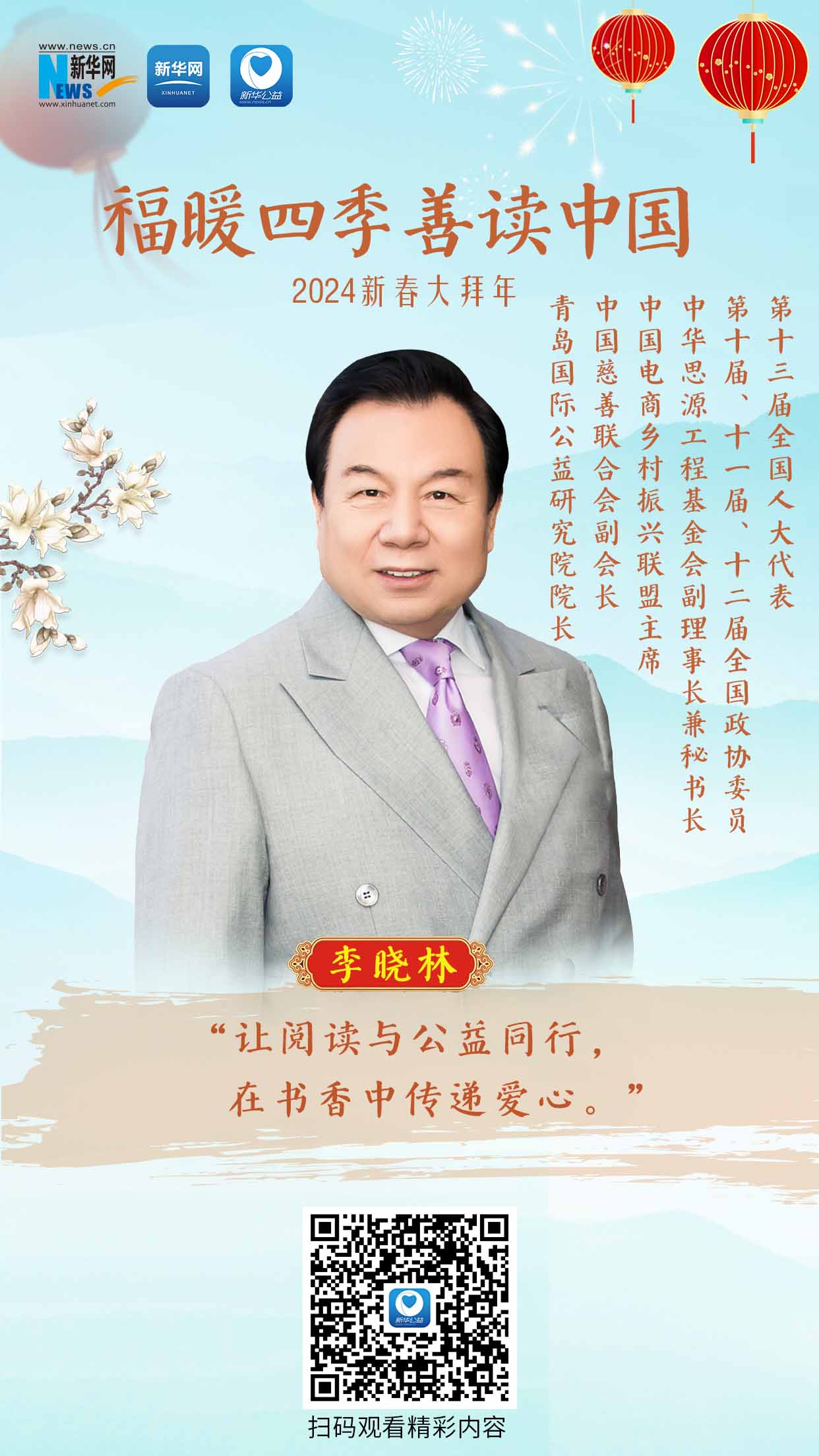 玉兔辞旧,龙腾盛世。新春佳节到来之际,第十三届全国人大代表,第十届、十一届、十二届全国政协委员,中华思源工程基金会副理事长兼秘书长、中国电商乡村振兴联盟主席、中国慈善联合会副会长、青岛国际公益研究院院长李晓林博士祝大家龙年行大运、龙马精神、龙行龖龘、万事兴隆,祝愿伟大祖国繁荣昌盛!