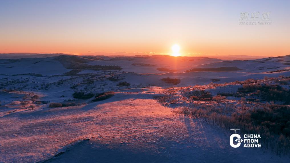 冬日清晨,内蒙古自治区锡林浩特市白音锡勒草原迎来入冬后首场雾凇。日出晨光洒落雪原,千树万枝凝霜挂雪,银装素裹的天地间,冰雪美景与幻日景观交织成梦幻画卷。