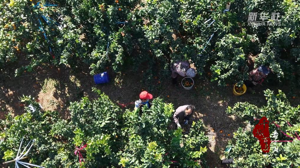 当下,湖南省永州市东安县端桥铺镇智慧果园迎来丰收。5000余亩柑橘林间,金黄的果实缀满枝头,工人们正忙着采摘、装箱,一派繁忙景象。