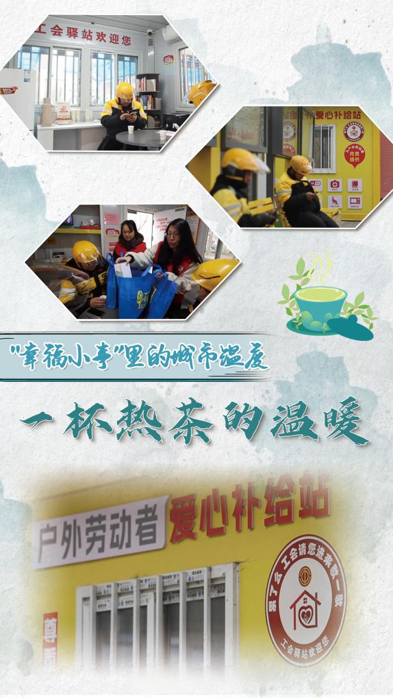 送保温杯、护膝、手套……除了设施齐全的工会驿站,街道还时常组织活动给新就业形态劳动者群体提供不一样的温暖,传递城市关怀。