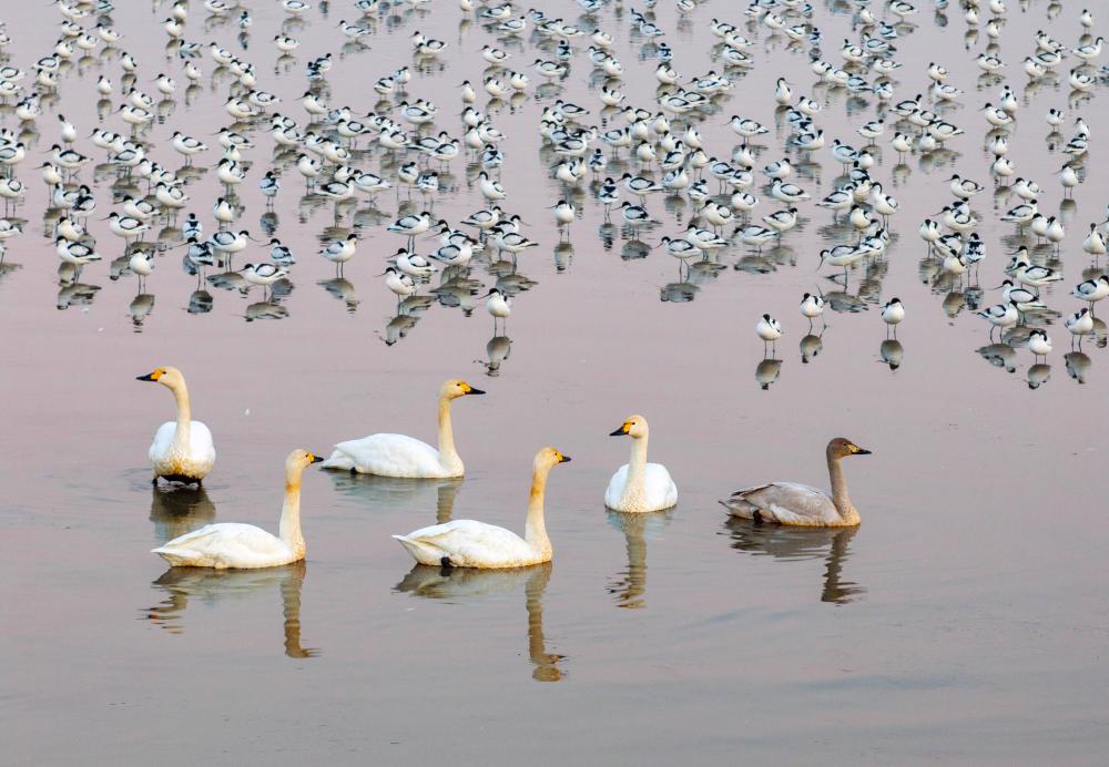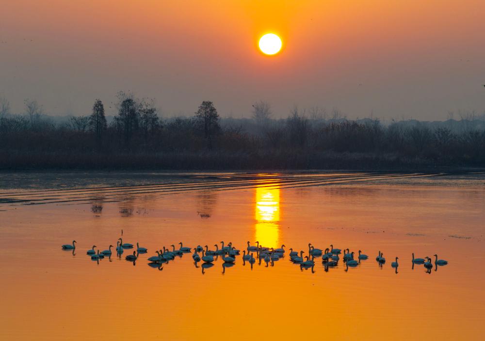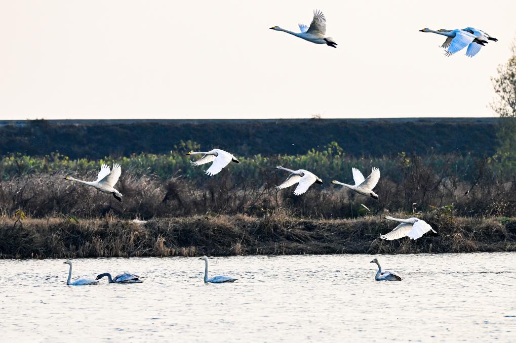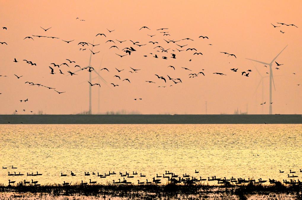 ↑2025年12月25日在位于湖北省黄冈市黄梅县的龙感湖国家级自然保护区拍摄的鸟类。CICPHOTO/王江 摄