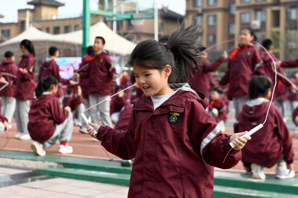 为增强学生体质,山东省日照市莒县第一实验小学在保留原有上午大课间的基础上,增设了下午30分钟阳光大课间,让孩子们“身上有汗、眼里有光”,健康成长。
