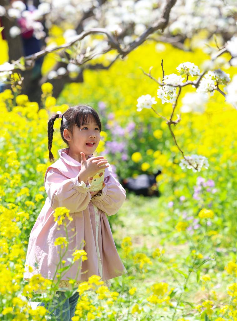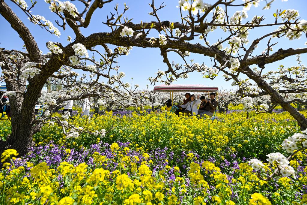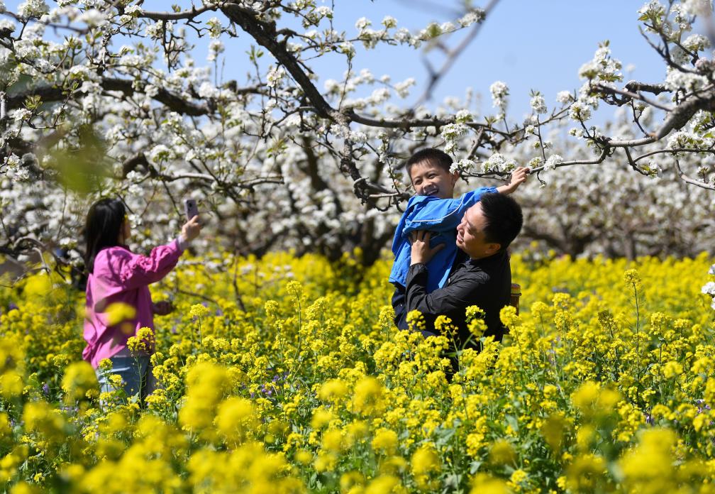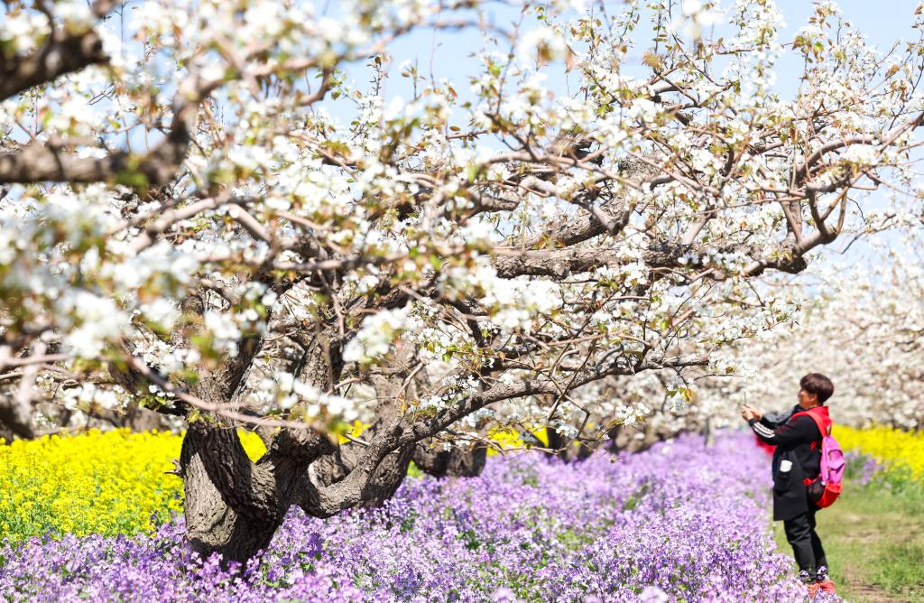 近日,河北省晋州市17万亩梨树迎来盛花期,梨花与田间连片盛开的油菜花相映生辉,吸引大量游客前来赏花踏青,休闲度假。