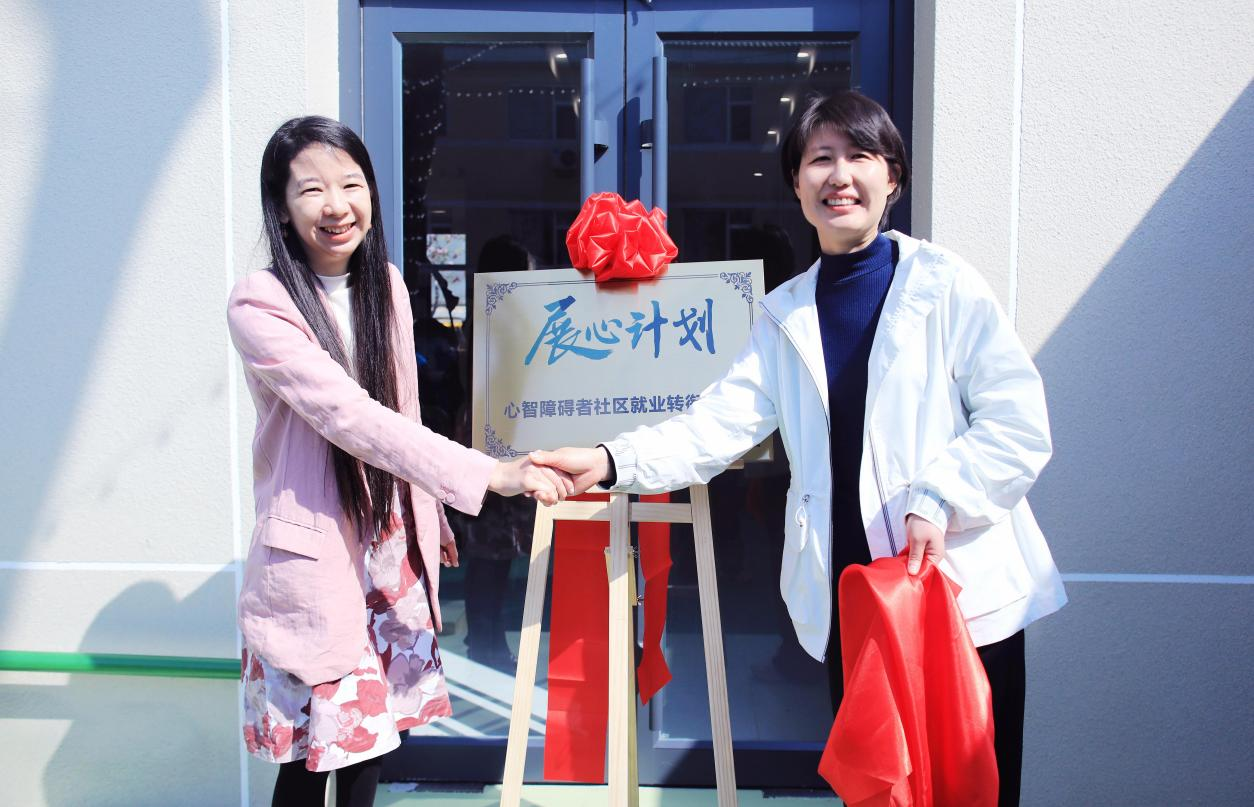 在热烈的掌声中,街道有关负责人、星巴克基金会理事长、北京星巴克咖啡有限公司、中国人寿年丰保险代理公司负责人、正心益行济困慈善信托委托人、“心青年”代表及“融爱融乐”代表等嘉宾共同为基地剪彩揭牌。“展心计划心智障碍者社区就业转衔实习基地”牌子正式亮相,标志着这一社区融合就业实践阵地正式启用。